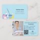 Cleaning service light blue photo QR code Business Card