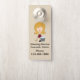 Cleaning service neighbourhood door knob advertising template with image of a cleaning character and simple layout on one side with ability to add more information on the backside. Replace the cleaning character with your own company logo or graphic to make this your own to target a specific neighbourhood promoting your services.