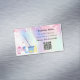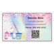 An elegant and glamourous business card on holographic background, pink, purple, mint green decorated with pink confetti and cleaning equipment. Personalise and add Your name, text contact info and your own QR code to your website address.