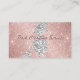 custom luxury metallic Rose Gold faux foil sparkling glitter printed business card template with accents of platinum ice silver chunky glitter, and peacock gemstones. Simple to personalize / customize and make all your own