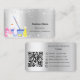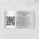 An elegant and glamourous business card on a faux silver metallic looking background decorated with faux glitter dust on front and cleaning equipment. Personalise and add Your name, text contact info and your own QR code to your website address. Facebook and Instagram icons. Delete if not wanted.