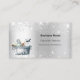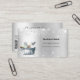 An elegant and glamourous business card on a faux silver looking background decorated with faux glitter dust on front and cleaning equipment. Personalise and add Your name, text contact info and your own QR code to your website address.