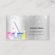 An elegant and glamourous business card on a faux silver looking background decorated with faux glitter dust on front and cleaning equipment. Personalise and add Your photo, name, text contact info and your own QR code to your website address.
