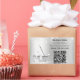 An elegant and glamourous business sticker on a faux silver looking background decorated with faux silver glitter dust and cleaning equipment. Personalise and add Your name, text, contact info and your own url to your website or your social media account to the QR code.