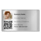 An elegant and glamourous business card on a faux silver looking background.  Personalise and add Your photo, name, text, contact info and your own url to your website or your social media account to the QR code.