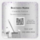 A faux silver metallic looking background decorated with violet, purple faux glitter dust and cleaning equipment. Personalise and add Your name, text and your own QR code to your website address.