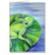 A frog (symbol of cleansing, replenishing, adapting, and good fortune) sits on a lily pad and looks at the viewer.