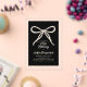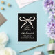 Elegant black and white clear acrylic invitation features large white pearl script bow on a black background. The black background is pulled in, so your guests can see the acrylic transparency around the edge. This is one of the hottest invitation trends this season. Calligraphy adds a special touch. All text is editable.