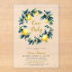 Elevate your baby shower with sophisticated Italian luxury using this Clear Acrylic "Ciao Baby" Lemon Wreath Invitation! A breathtaking watercolor wreath of vibrant yellow lemons, soft green/blue leaves, dainty white blossoms, and elegant gold script glows through crystal-clear acrylic — perfectly evoking the sunny Amalfi Coast groves, Positano terraces, and Mediterranean paradise vibes.