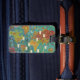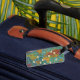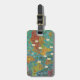 The tiny travel icons are secured by elegant luggage tags, crafted from light cream or light blue acrylic. These tags add a touch of sophistication, their smooth surface contrasting with the vibrant map and playful icons. Each tag may vary slightly in shape, echoing the continents they represent.