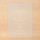 Make a lasting impression with this luxury acrylic wedding invitation featuring a refined French estate-inspired design. Printed on clear acrylic with elegant minimalist typography, this invitation offers a modern yet timeless aesthetic perfect for sophisticated celebrations.