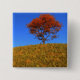 A peaceful 3D landscape in fall, created in Vue. On top of a hill covered with tall golden grass, against a clear blue sky, a solitary orange maple stands with a wooden bench under it to stop and rest on.