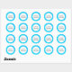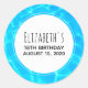 Birthday / event thank you stickers with a photograph of clear blue pool water, with shimmering reflections. A white circle layered over top with your text inside.