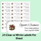 A set of laser cut, transparent return address labels on clear self-adhesive stickers. This design has a Christmas bells with a red ribbon and a customizable name and address. Perfect for adding a minimalist return address to Christmas cards and other correspondence that use colored envelopes. Customize the couples' names and address information using the editor in the listing.