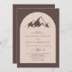 This clear mountain country casual arch wedding invitation is perfect for a classic wedding. The design features an idyllic watercolor brown mountain.