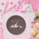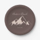 This clear mountain country wedding cake paper plate is perfect for a rustic wedding reception. The design features an idyllic watercolor beige mountain.