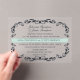 Elegant, vintage victorian filligree swirly leaves border design with typography wedding invite and sweet bride & groom monogram initals on the back.
