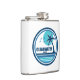 The flask itself is fine. It’s a cheap flask, obviously bought in bulk, however am prepared to overlook that. Given that it is a personalized item, I would have liked to have seen gift boxing instead of the generic packaging. Terrible printing, and/or quality. It’s a cheap, tacky vinyl. It is not cut straight and is also applied in a way that it is overhanging the bottom, causing the glue to catch on items and it will eventually roll and tear, damaging the wrap.