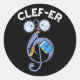 Clef-er Funny Music Pun Dark BG Classic Round Sticker