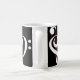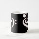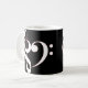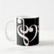 Clef Heart Mug features a heart formed by a treble clef and a bass clef in white outlined in red.