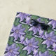 Digitialized, graphic photo, of Clematis, Flower blossoms, highlighted in, brilliant, purple-displaying, bright green, leafy, stems.