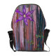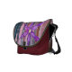 The construction of this bag is excellent and looks great in purple with the blue/grey trim. I am the artist and I purchased this bag to advertise my Zazzle store at a local craft market; I sold this bag the first day I had it to a confirmed purple lover. I've heard comments from a lot of passers by that Rickshaw construction is the best! The add-on delux drop pocket seems to work pretty well, too. The printing looks great. The artwork worked really well on this bag as the subject is focused in the front flap and the color continues down the back with a wispy, leaved branch.