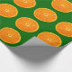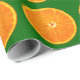 Wrapping paper with an attractive Clementine slice motif on a green background.