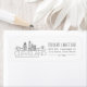 This label features a stylised illustration of the city's unique skyline with its name underneath.