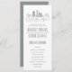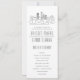 A deco skyline-themed wedding program for a wedding taking place in the beautiful city of Cleveland, Ohio. This item features a stylised illustration of the city's unique skyline with its name underneath. This is followed by your wedding day information in a matching open-lined style.
