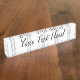 The nameplate looked exactly as pictured, I was very happy with this product! It also arrived promptly after placing my order! I would definitely recommend this product! The printing turned out exactly as I designed it, very pleased!