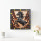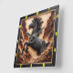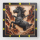 Introducing a striking wall clock that captures the spirit of freedom and strength, featuring a magnificent black horse in mid-gallop. This exquisite timepiece showcases a Wild Mustang rearing on the edge of a rugged cliff, symbolising untamed beauty and the thrill of nature. The clock is elegantly framed by a ½-inch flat black wooden border, which enhances its bold design. The embedded wood is adorned with deep carvings that highlight a charred, textured grain, complemented by rugged burn marks in shades of red, grey, and black, creating a stunning contrast against the lighter wood.