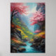 Embark on a journey into the heart of nature's grandeur with this captivating digital poster. Towering cliffs embrace a majestic canyon, their rugged beauty a testament to time's artistry. At the canyon's base, an azure stream rushes, a lifeline that weaves its way through this masterpiece. This artwork captures the dynamic harmony of earth and water.