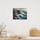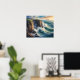 Featuring a scene of rocky cliffs overlooking the ocean. The cliff's hues blend with the deep blue sea. Waves crash against the cliffside, creating a rhythmic melody. It is like the ocean is telling a story through its powerful waves. Hang this poster on your wall and feel the presence of the sea in your room, bringing a piece of coastal beauty to your space.