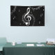 G Clef among white notes of music on black. The black background makes the bright white notes pop.