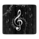 G Clef among white notes of music on black. The black background makes the bright white notes pop.