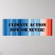 Powerful message: This poster features the iconic Climate Stripes design, a visual representation of global temperature changes over time. The bold message "Climate Action Now!" urges immediate action to address the climate crisis.