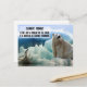 This climate change postcard features the picture of a polar bear and a penguin on an iceberg.