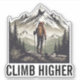 Elevate your aspirations with our inspiring "Climb Higher" mountain hiker sticker. This captivating sticker features a graphic illustration of a determined hiker ascending a majestic mountain, accompanied by the empowering message "Climb Higher." Perfect for adventurers, outdoor enthusiasts, and anyone striving to reach new heights in life.