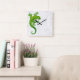 Climbing Green Gecko on a White Wall Square Wall Clock