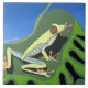 This colourful ceramic tile features my simple design of a green tree frog on a jungle leaf against bright blue sky. Perfect to brighten up a work top or an occasional table and a lovely gift for a frog lover.