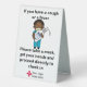 I ordered a number of items from Zazzle and all of them are wonderful. This table tent sign is more durable and professional than I expected. It’s not just a heavy cardboard tent. It has the feel and weight of durable plastic and will make a wonderful keepsake for the new mom! I highly recommend this product. .