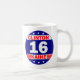Hillary Clinton and Tim Kaine for the White House in the 2016 presidential election. A red, white and blue roundel with the text CLINTON, KAINE, 16