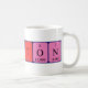 Clinton spelled out as Cl I N T O N (Chlorine Iodine Nitrogen Tritium Oxygen Nitrogen) on a mug for the scientist in you.