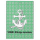 Anchor and helms decorate the front and back of the board. front is covered with multiple white ship's helms on a Medium Green background. On back a large white anchor is centred with text below (personalise with your own ship's name/text of your choosing).