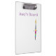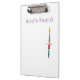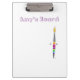 A clipboard with Polly the paintbrush character from the children’s book “ The Paintbrush Without Colour” by Linda Kavalsky.The text on the clipboard is customisable.