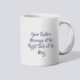 Great product, good delivery time, and an awesome idea for a gift! It was even better than I could have imagined, the customisation is incredible. The colour is perfect, it's dishwashable and microwaveable, the text print on the mug looks exactly like I wanted it to look and best of all, it's a large sized mug that you can drink plenty of coffee or whatever you want! I gifted this to my father and he loves it. He drinks coffee with that mug everyday :) I recommend.