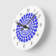Blue beads of increasing size, form five concentric circles from small in centre to large in outer rim. Optical illusion of looking down a long tunnel. Black numerals with black minute markers.