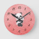 Clock for Kids Room with a Mother and Baby Panda illustrated, on a faux leather background in peach.  Thanks to Creative Fabrica for some of the elements in the design.