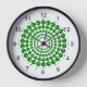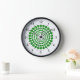 Green beads of increasing size, form five concentric circles from small in centre to large in outer rim. Optical illusion of looking down a long tunnel. Black numerals with black minute markers.