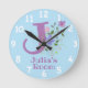 I bought the clock as a 'first time' grandmother. When I opened the package, I cried. the workmanship, material, color and the opportunity to personalize it was just perfect. I know that my grandson will be able to quickly learn to identify numbers, count and tell time! What a keepsake! I was totally happy with the printing, color choice and overall presentation of the clock!